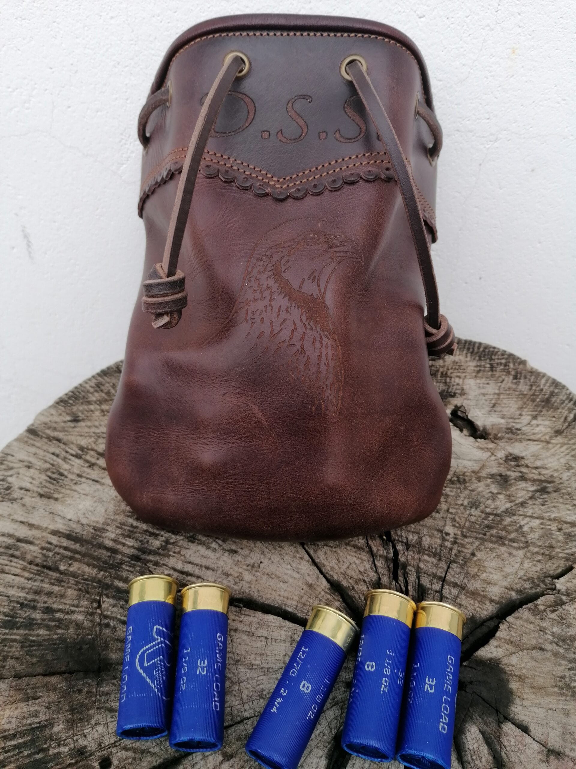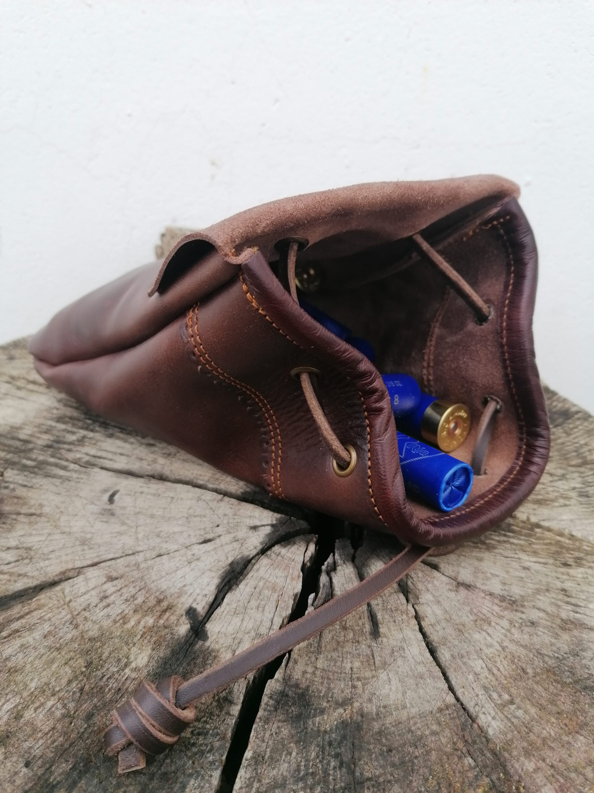 Bolsa para cartuchos hecha en cuero de ternera 2 mm color chocolate