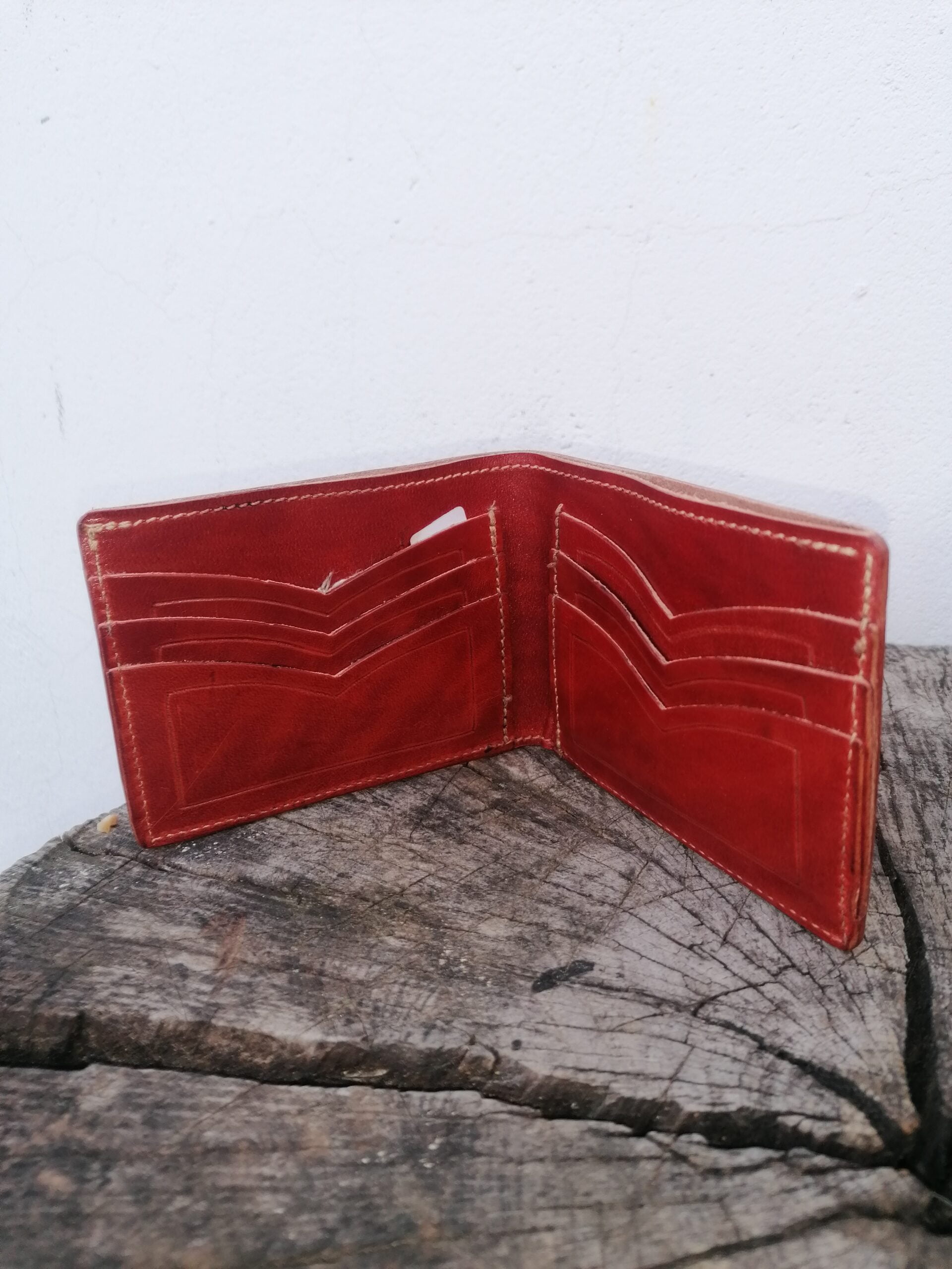Cartera tipo americana de cuero de potro , con grabado, con tarjetero y billetero