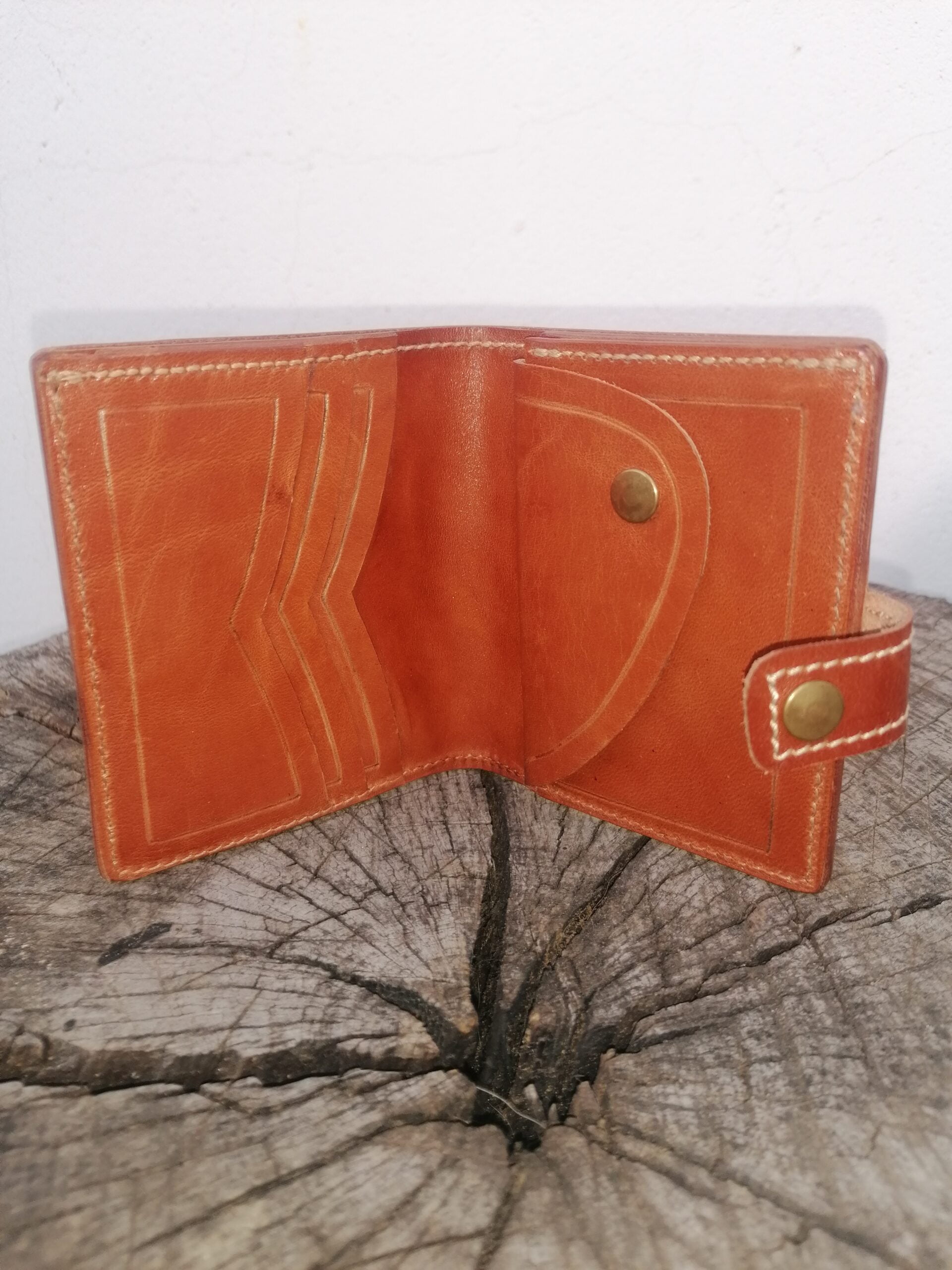 Cartera con monedero ,tarjetero y billetero hecho en cuero de potro y con bandera de España