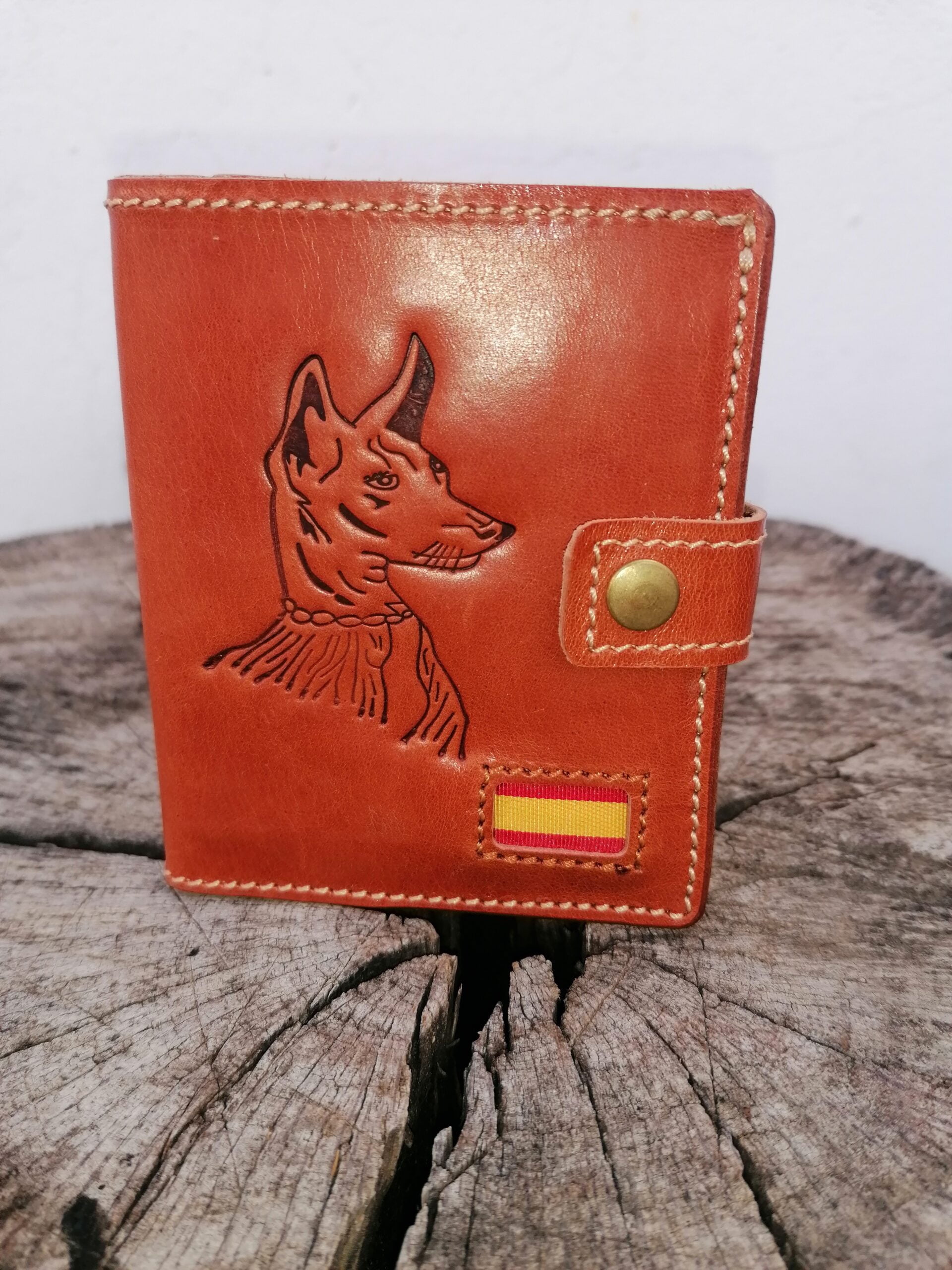 Cartera con monedero ,tarjetero y billetero hecho en cuero de potro y con bandera de España