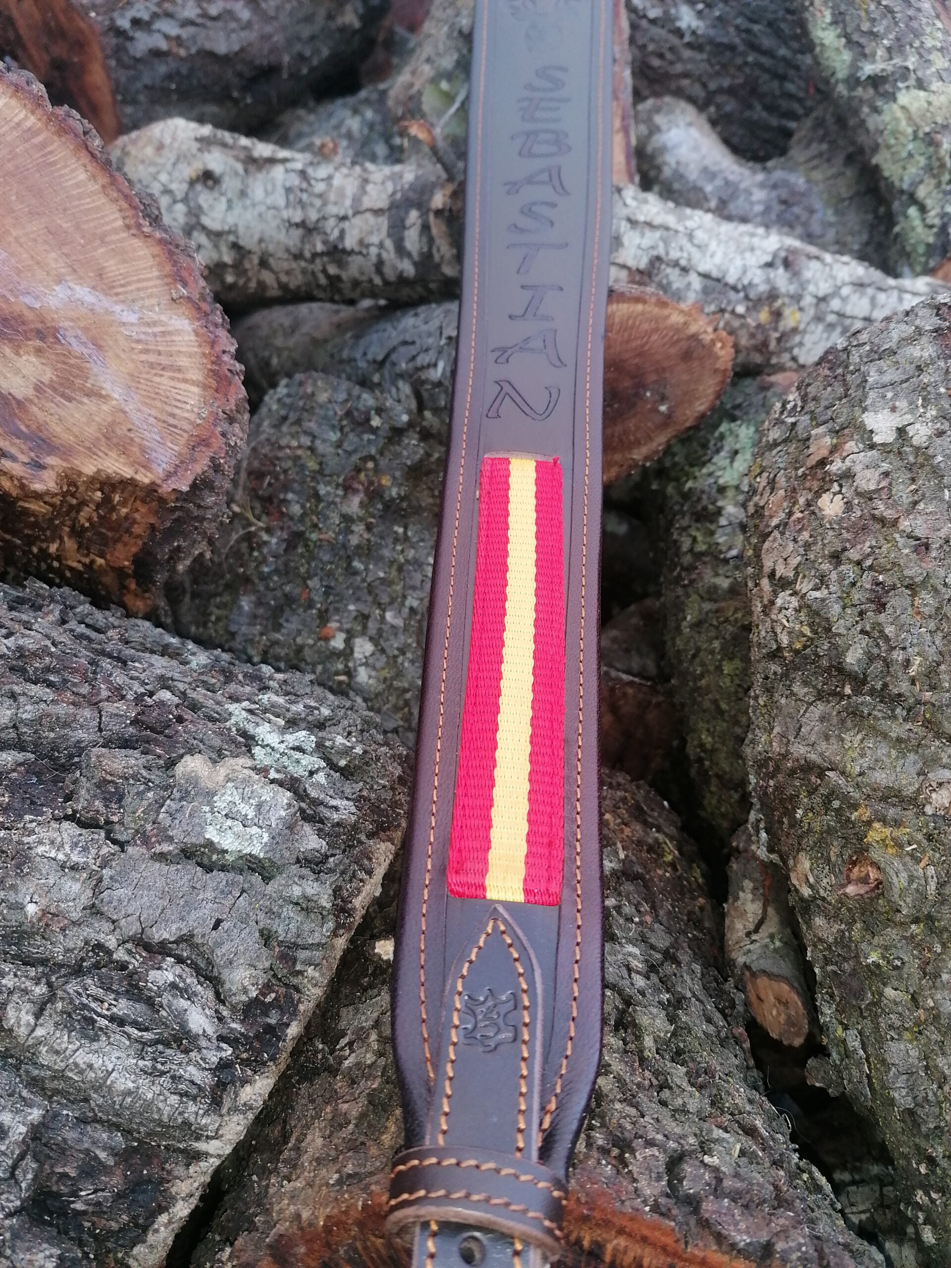 Funda depara rifle estandar en cuero cuello de ternera color chocolate personalizada con banderas y nombre
